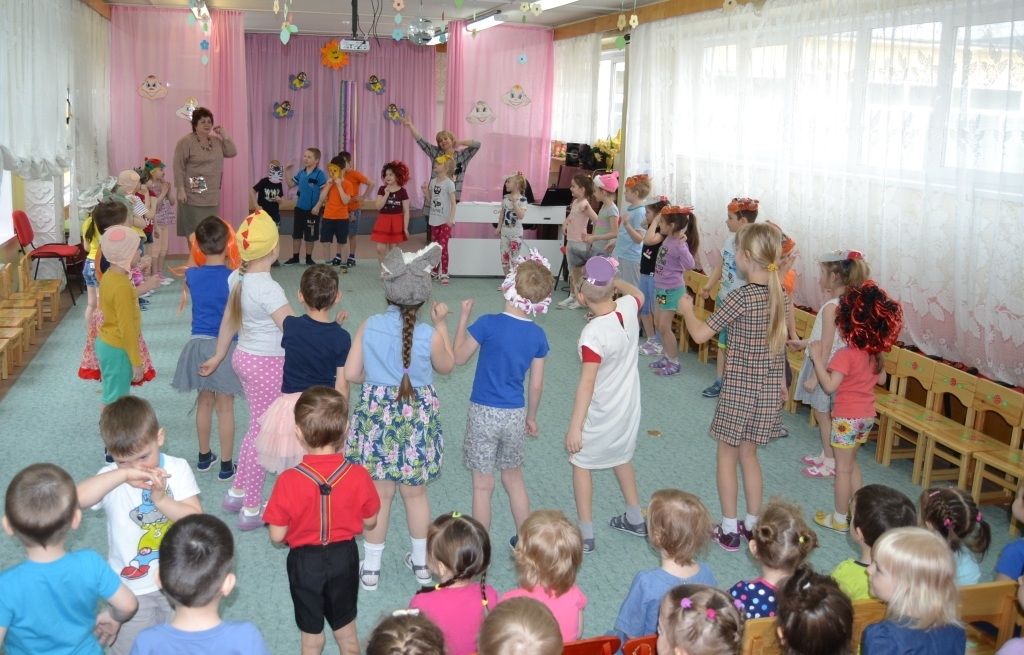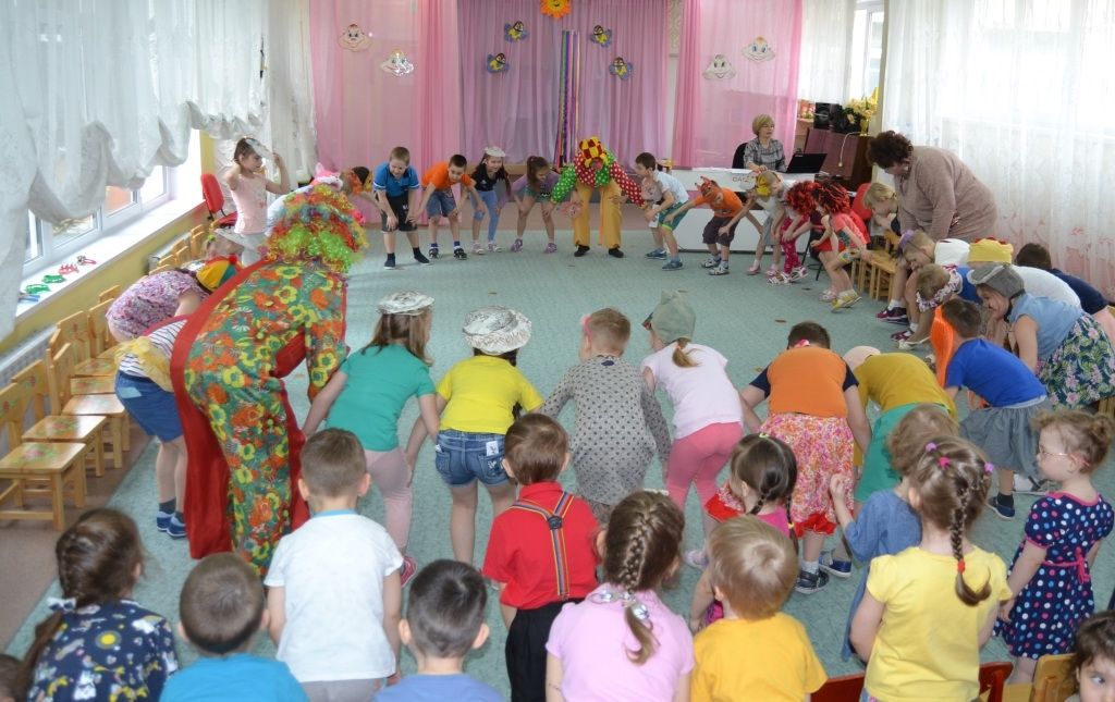 Какой же праздник может обойтись без веселых гостей? Вот и к нашим ребятам в гости приходили озорные клоуны, которые вместе с детьми шутили, играли в забавные игры, ловили огромные мыльные пузыри. Ребята исполнили шуточные танцы «Пяточка-носочек», «Лавата», «Чичива» и «Девчонки мальчишки», поиграли на музыкальных инструментах и спели песню «Весёлый старичок».