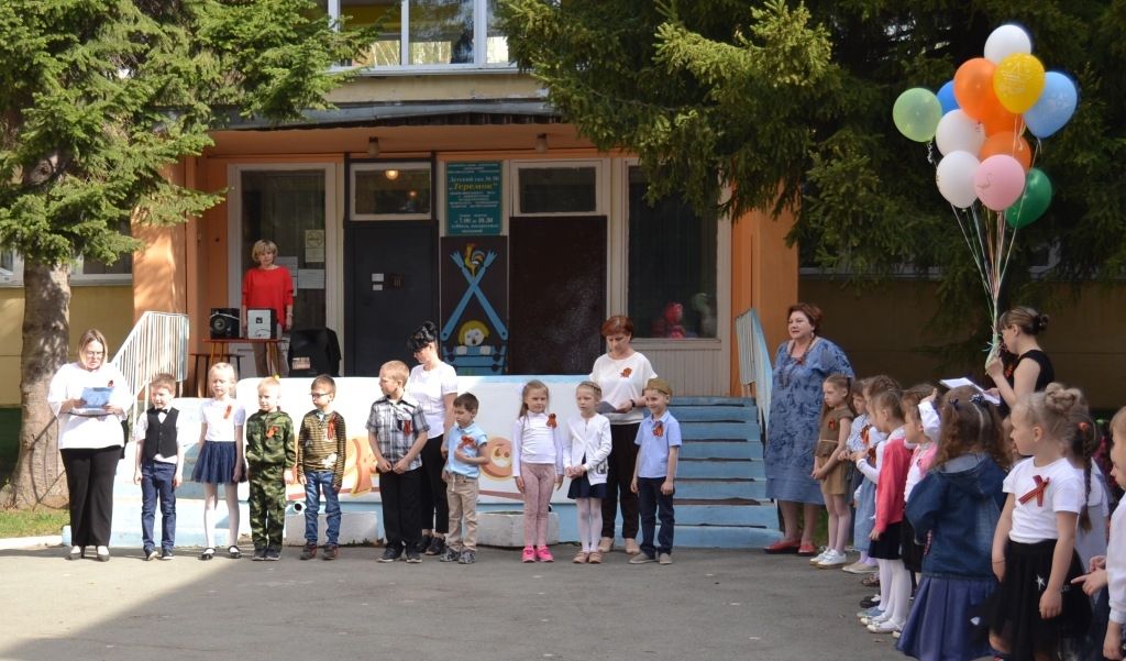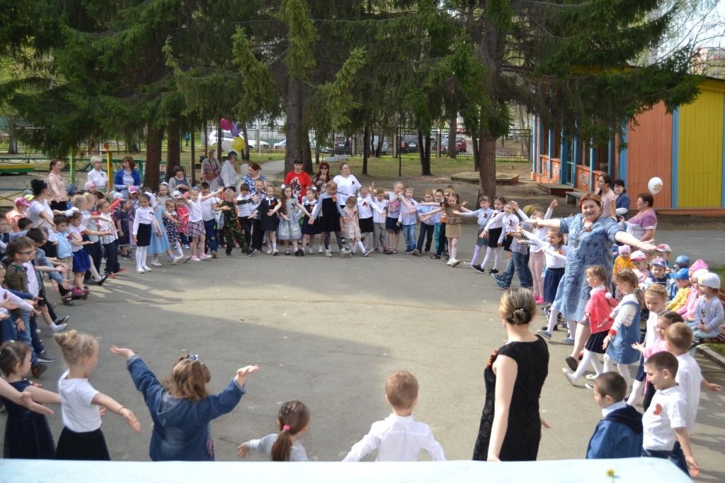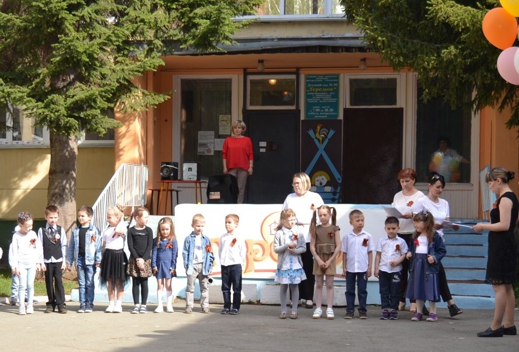 Праздник проходил 8 мая на открытой площадке, поэтому на нём присутствовали ВСЕ группы 1 здания детского сада, даже самые маленькие наши воспитанники!
