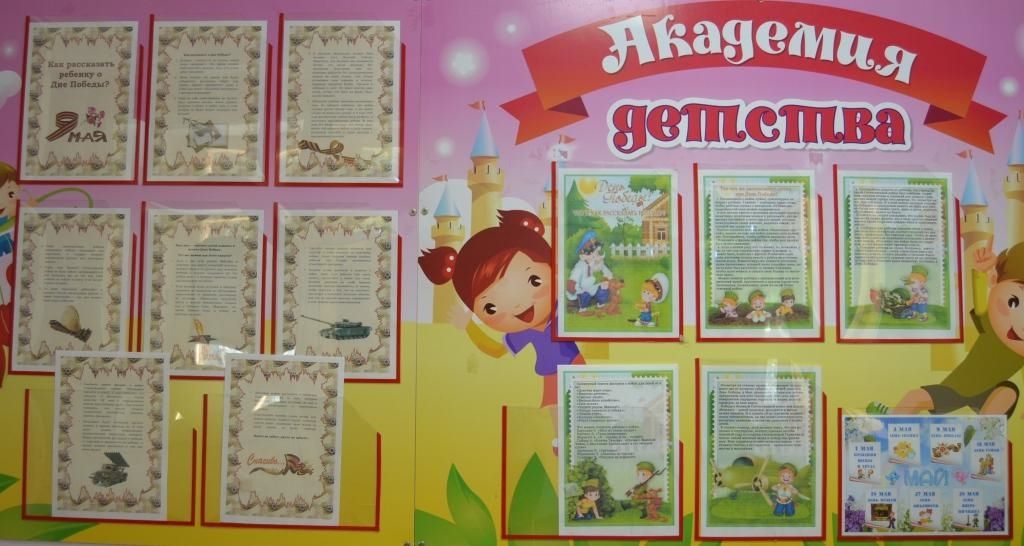 День Победы на протяжении десятилетий остается в России самым трогательным, самым душевным праздником. Никакие другие праздники не смогут сравниться с ним. В преддверии празднования Дня Победы в «Теремке» прошла тематическая неделя «Этих дней не смолкнет слава», все мероприятия которой были направлены на укрепление нравственно-патриотических чувств дошкольников, формирование знаний о ВОВ через различные виды деятельности. В холле размещён информационный материал для взрослых о том, что и как рассказать детям о Дне Победы.