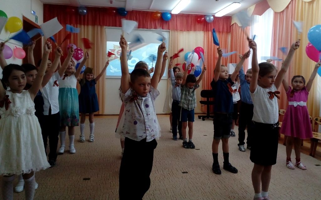 Ребята торжественно читали стихи о войне, о подвиге советского народа; вспоминали пословицы о дружбе, силе, отваге солдат; пели песни советских и российских композиторов «Сегодня салют», «Три танкиста», «Детство», «Главный праздник»; задорно и весело исполнили танец «Казачок» и флешмоб на тему военных песен.