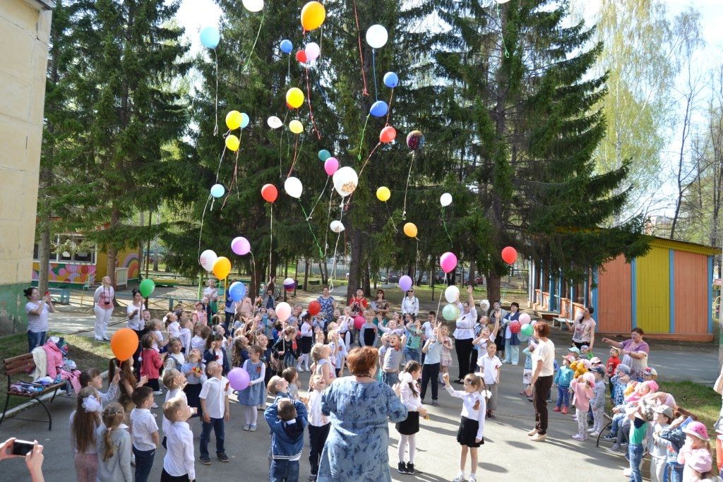 В конце праздника ребята спели песню «Детство» и выпустили в небо воздушные шары.