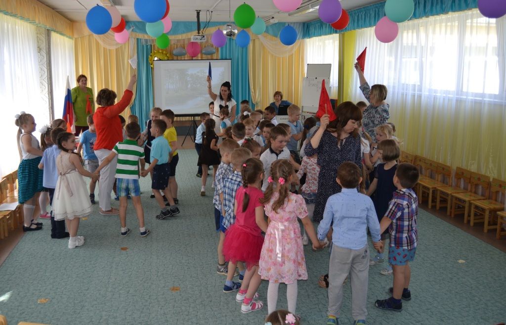 Начался праздник с торжественного внесения Флага России. Ребята читали стихи о государственных символах нашей страны и о Родине; пели песни «Моя Россия» и «Край, в котором ты живёшь»; исполняли танец «Росиночка – Россия» и флешмоб «От Волги до Енисея»; играли в подвижные и музыкальные игры «Я живу в России», «Передай мяч», «Соберись в круг»; разгадывали кроссворд.