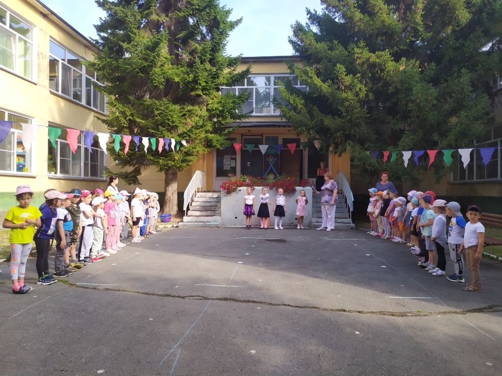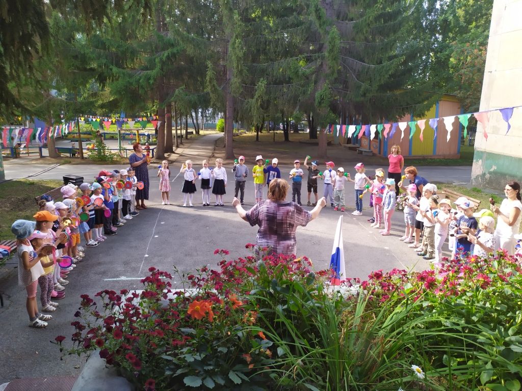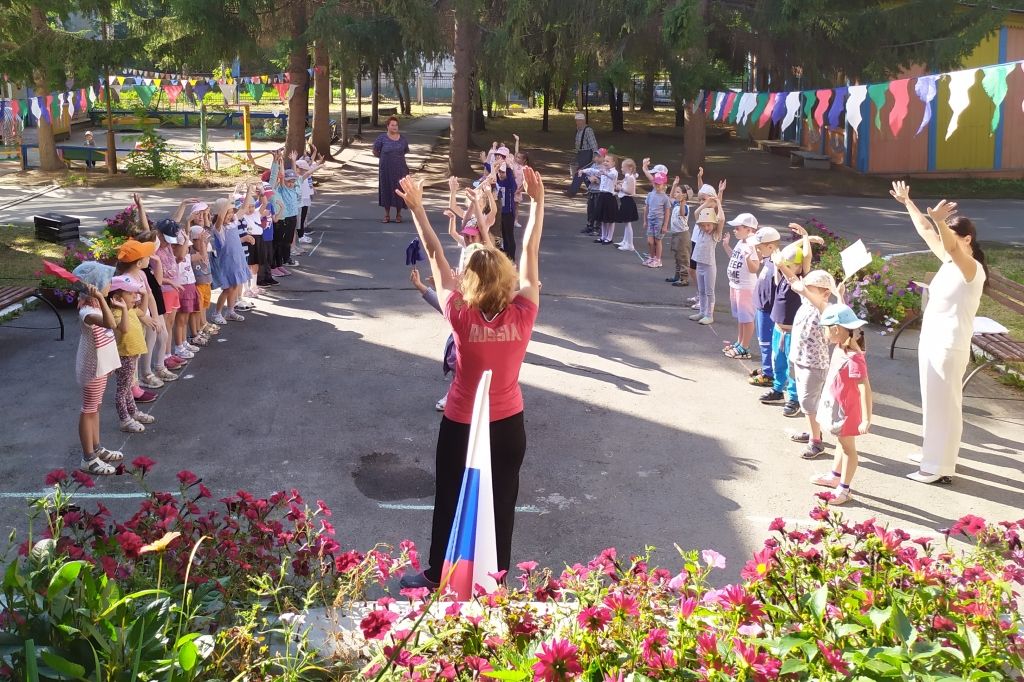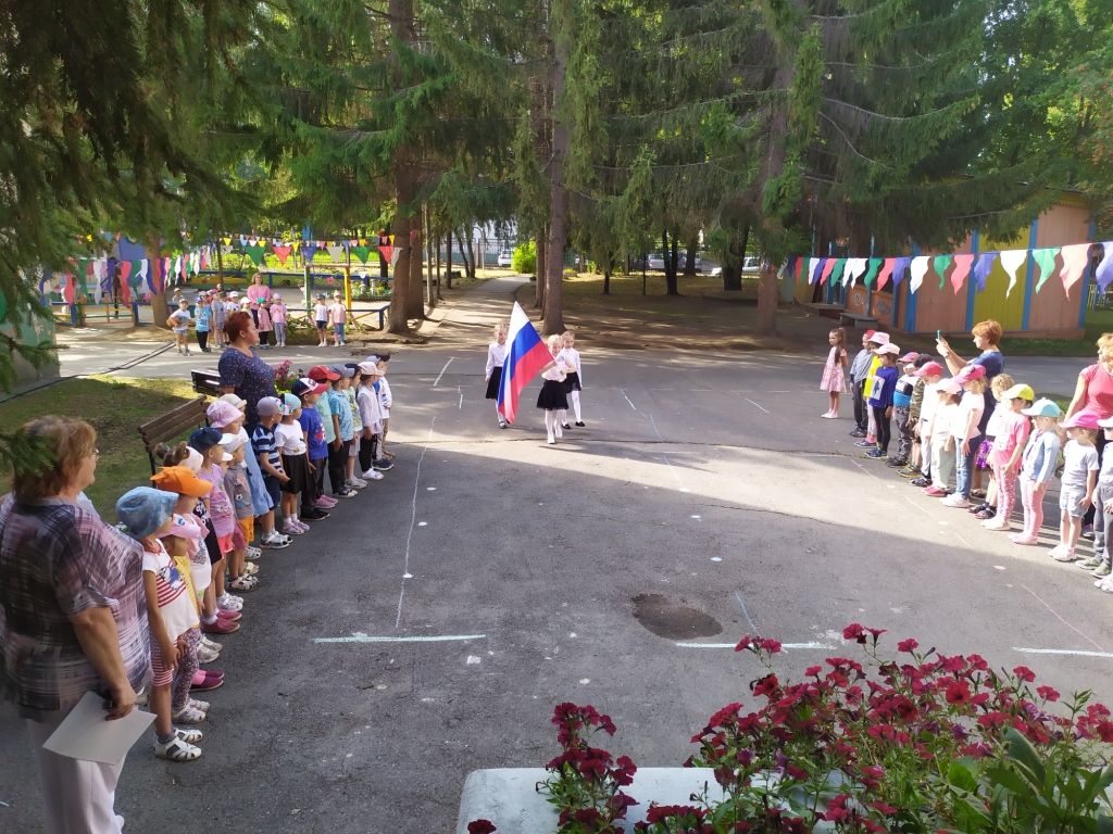 Начался праздник с торжественного внесения Флага России под «Марш Преображенского полка» и слушания государственного Гимна. Дети читали стихи о Родине, узнавали на портретах великих соотечественников, пели песню «Здравствуй, Родина моя», играли в игры «Я живу в России», «Передай флажок», «Перенеси флаг сквозь преграды», «Чей кружок скорее соберётся», на шумовых инструментах исполнили русскую народную мелодию «Калинка». А завершилось мероприятие ярким флешмобом «Дети России».