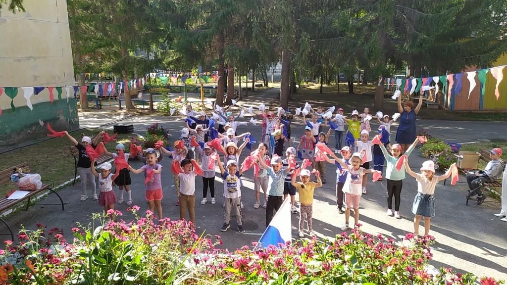 А 22 августа дети 1,7 и 8 групп приняли участие в утреннике «День Российского Флага», который подготовили и провели музыкальные руководители Ю.В. Филюшова и Г.А. Сергеева и инструктор по ФИЗО А.П. Суетина.
