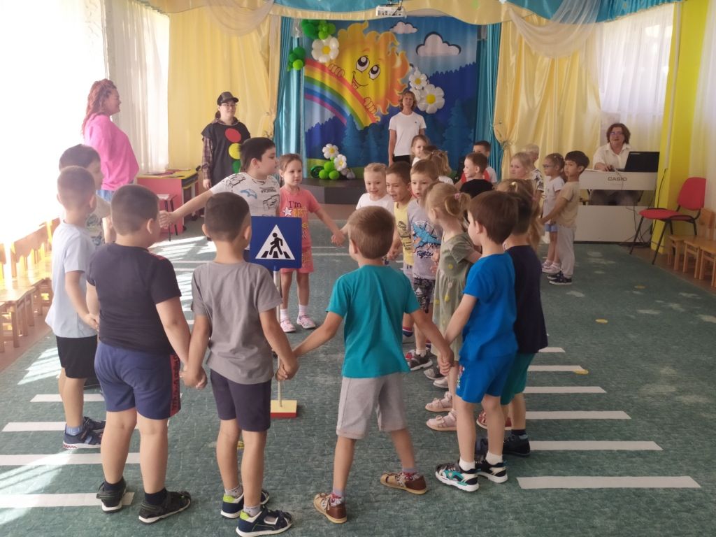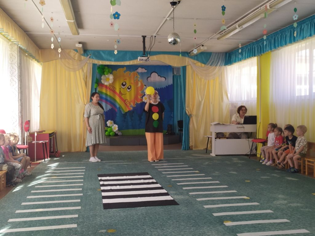 А дети средних и старших групп приняли участие в познавательно-развлекательном мероприятии «День рождения Светофора».