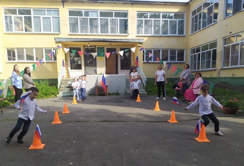 Дети исполнили песни «Белый, синий, красный» и «Большой хоровод», флешмоб под песню «Русский мир» О.Газманова, поиграли в игры «Перенеси флаг сквозь преграды», «Чей кружок скорее соберётся» и «Собери Российский флаг», вспомнили пословицы о Родине, флаге и дружбе народов.