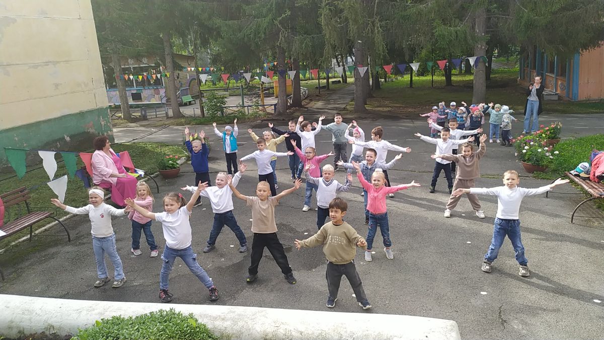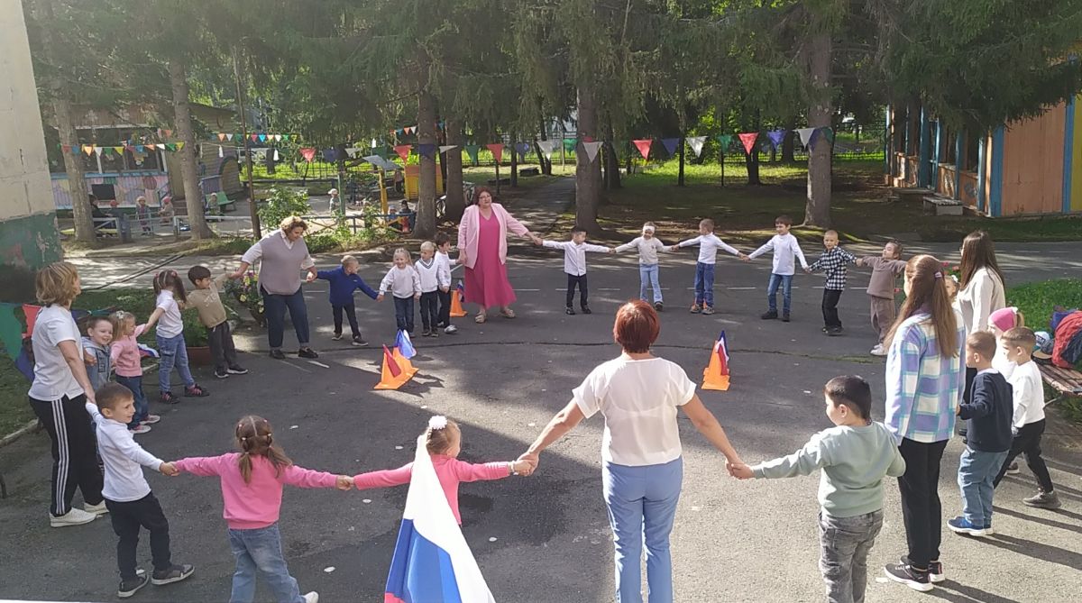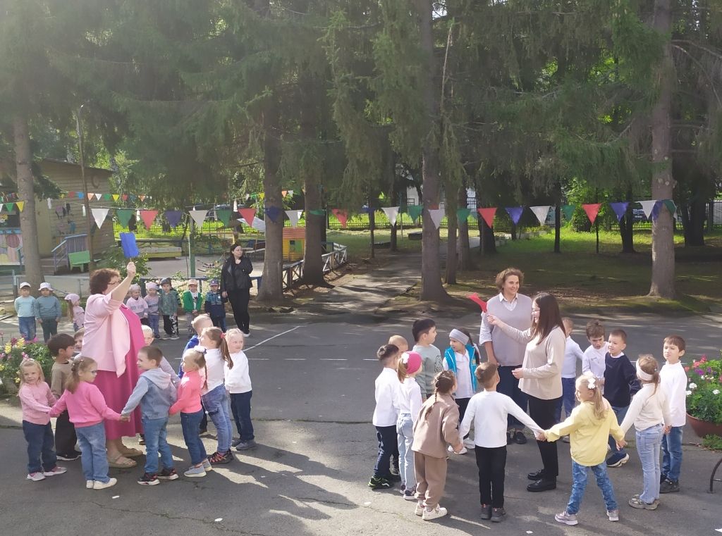 Дети старшей и подготовительной к школе групп собрались на открытой площадке , чтобы отметить этот знаменательный день.