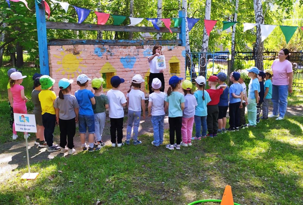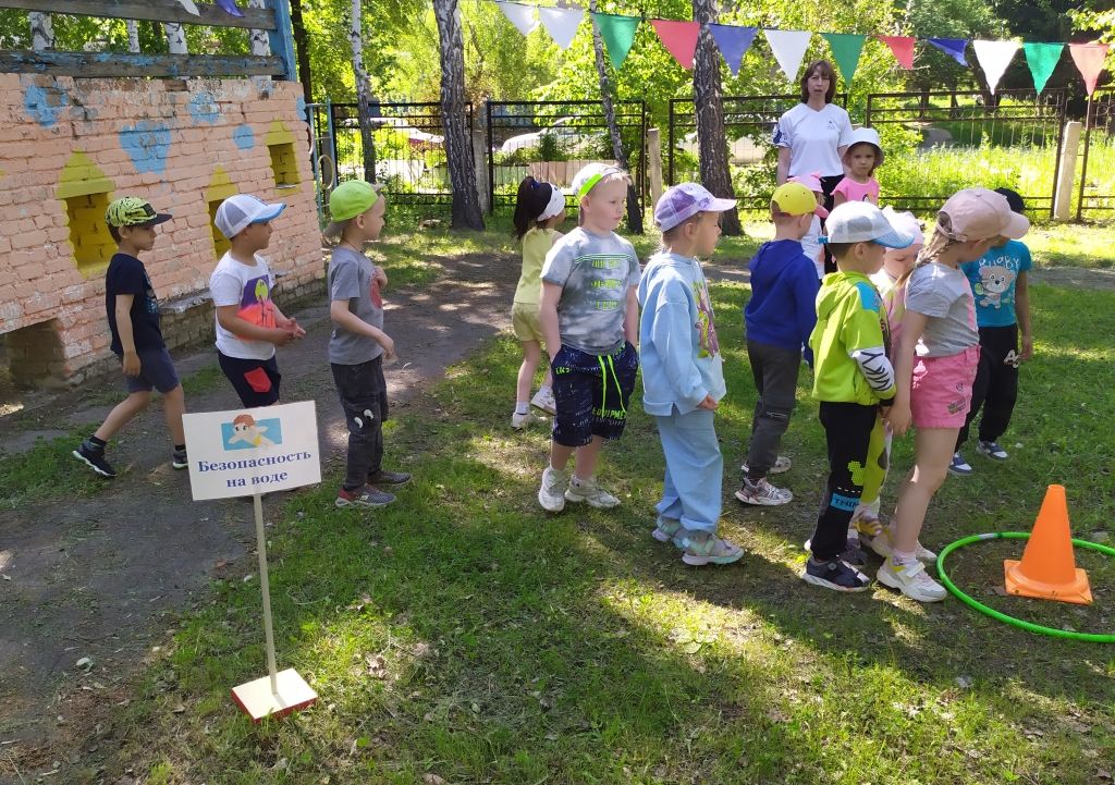 На станции «Безопасность на воде» ребята поиграли в игру «Спаси друга» и повторили правила безопасности во время купания в озёрах и прочих водоёмах.