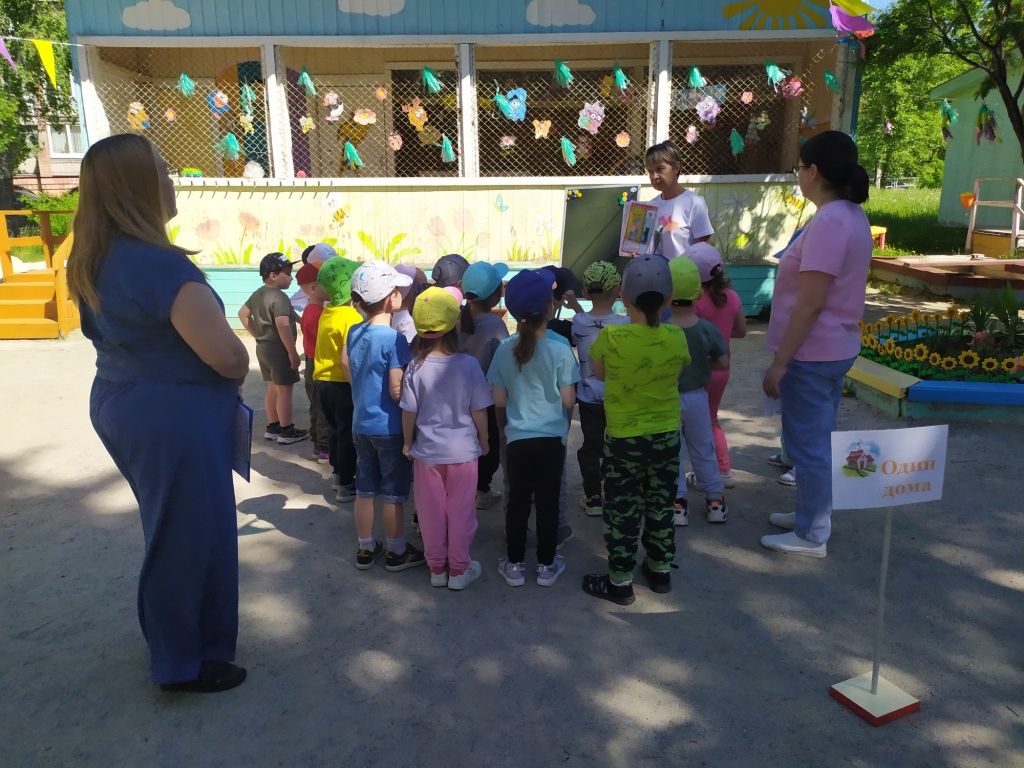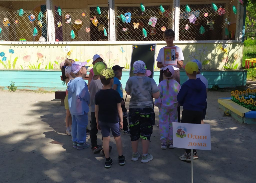На этапе «Один дома» ещё раз поговорили о том, что нельзя открывать двери незнакомым людям, баловаться с огнём, подходить к открытым окнам..
