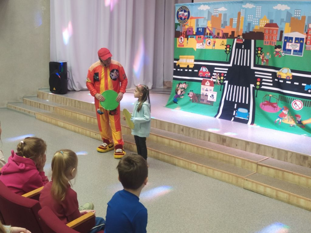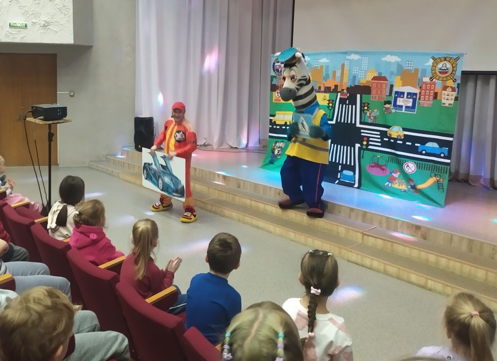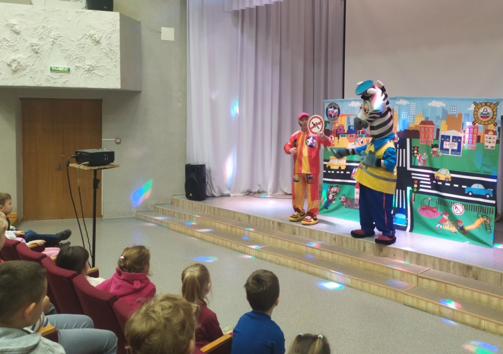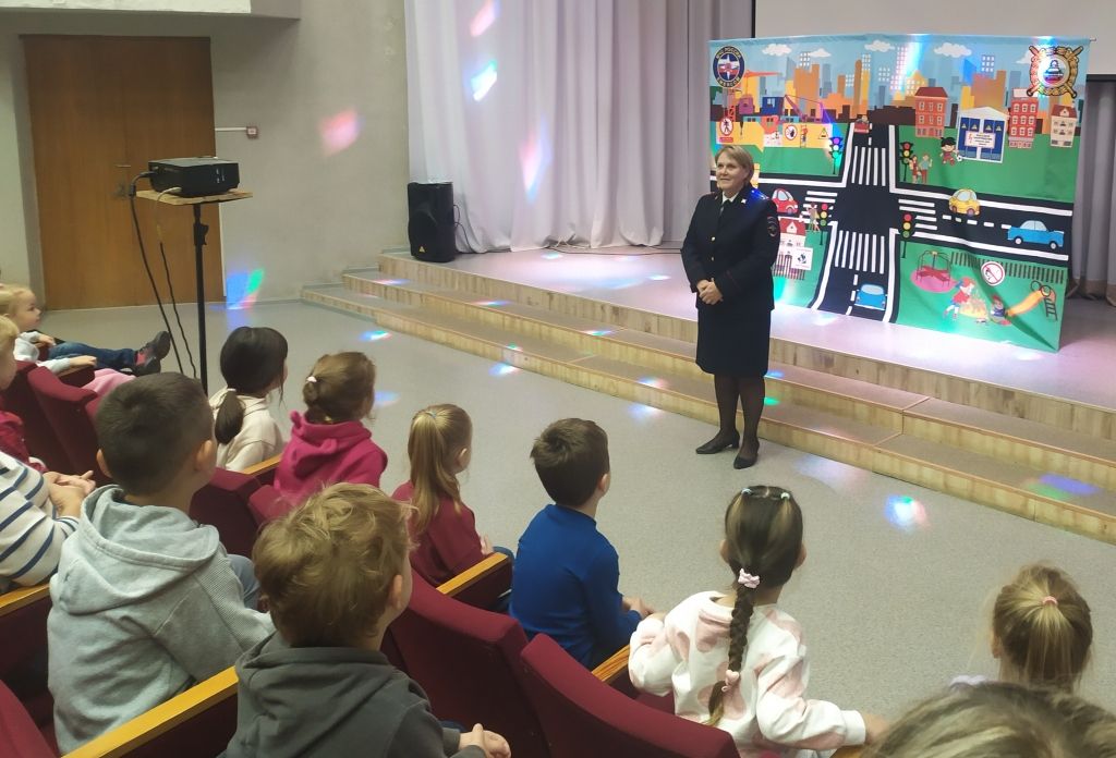 Перед спектаклем с ребятами побеседовала инспектор по пропаганде безопасности дорожного движения, старший лейтенант полиции Наталья Алексеевна Стоева. Наталья Алексеевна напомнила детям, что дорогу можно переходить только по пешеходному переходу, крепко держа за руку взрослого, в автомобиле - обязательно использовать детское кресло и пристёгиваться ремнём безопасности, а на верхней одежде необходимо иметь несколько светоотражающих элементов, чтобы быть заметнее на дороге.