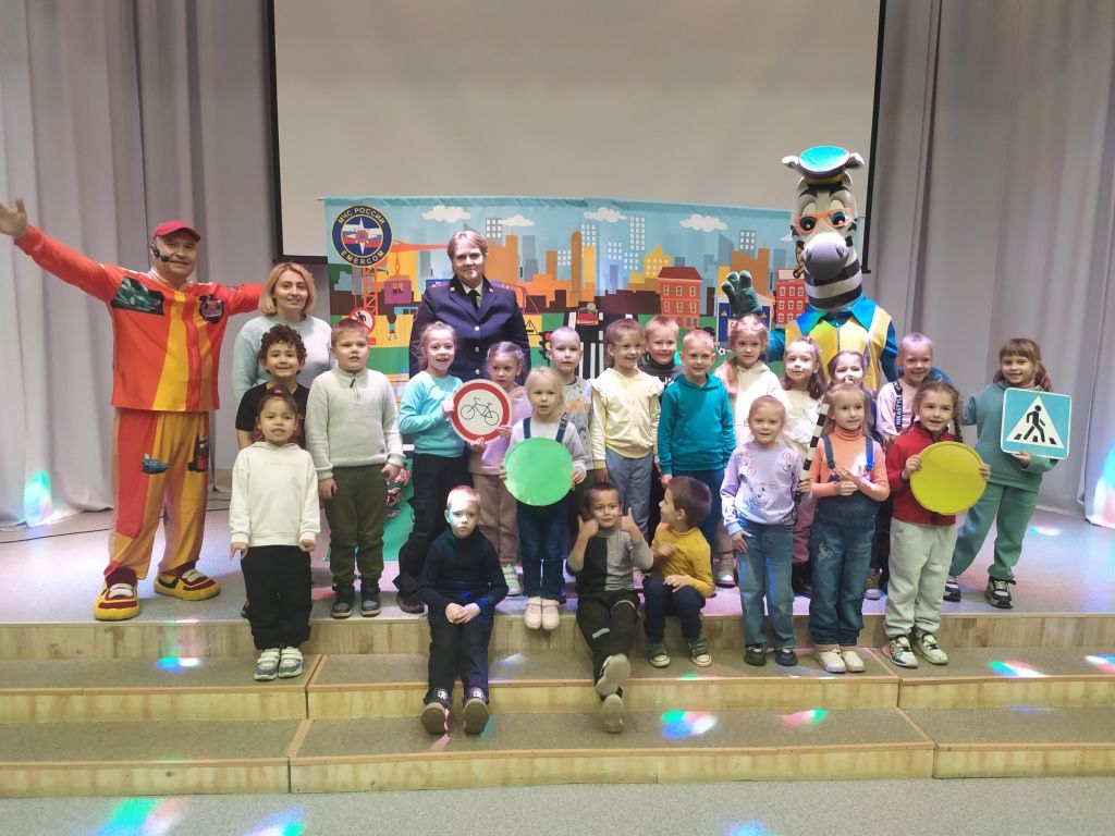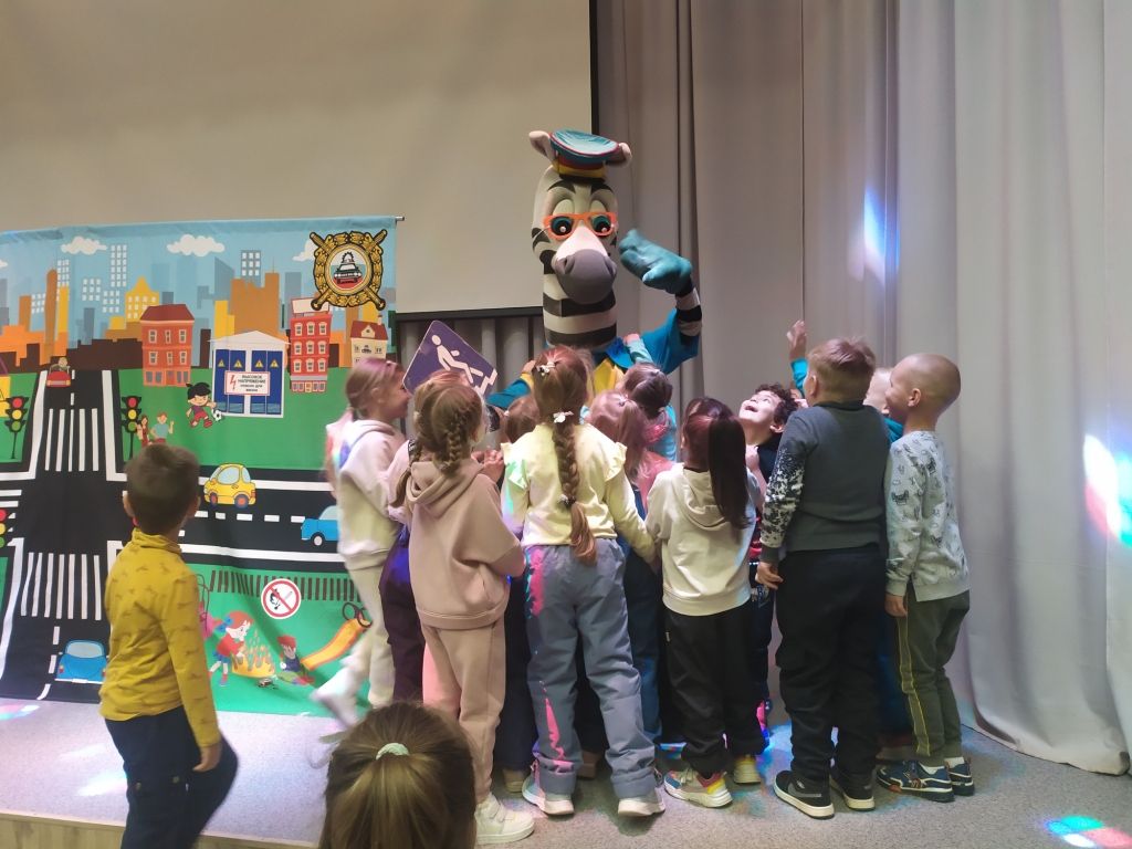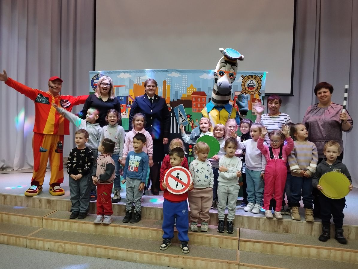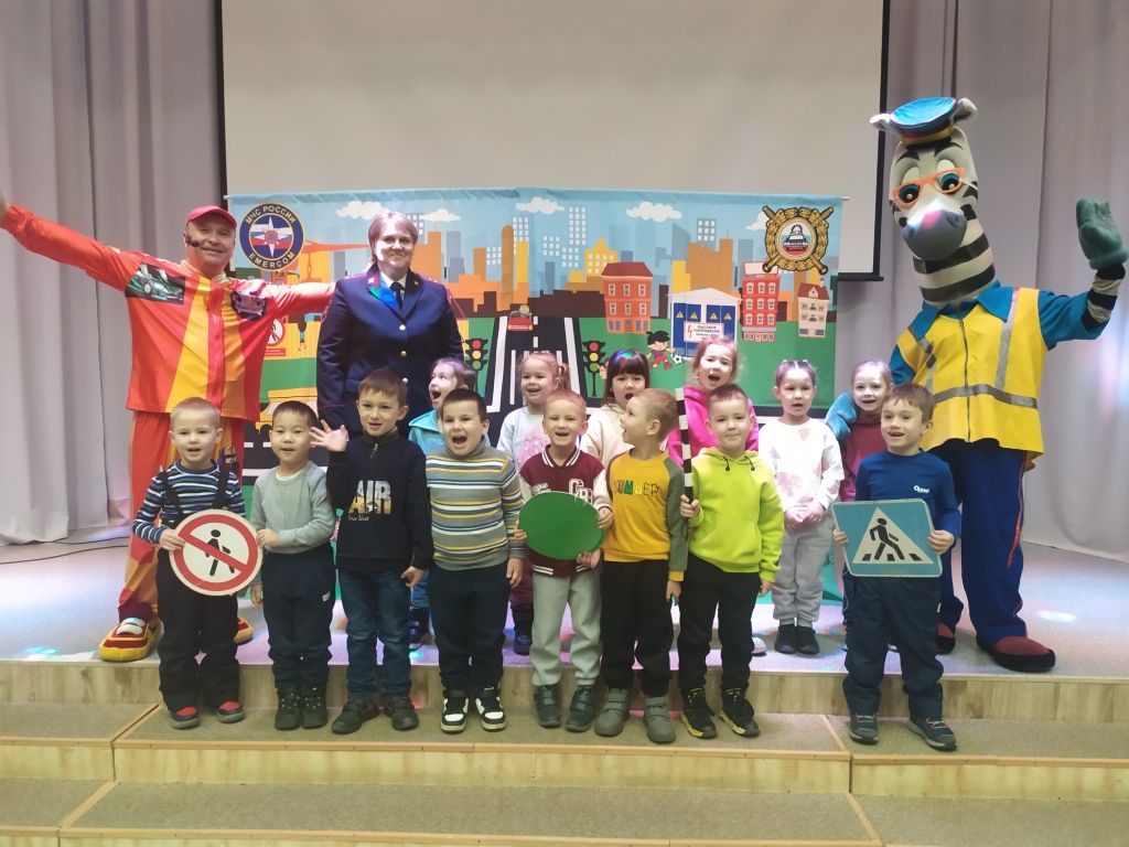 Перед спектаклем с ребятами побеседовала инспектор по пропаганде безопасности дорожного движения, старший лейтенант полиции Наталья Алексеевна Стоева. Наталья Алексеевна напомнила детям, что дорогу можно переходить только по пешеходному переходу, крепко держа за руку взрослого, в автомобиле - обязательно использовать детское кресло и пристёгиваться ремнём безопасности, а на верхней одежде необходимо иметь несколько светоотражающих элементов, чтобы быть заметнее на дороге.