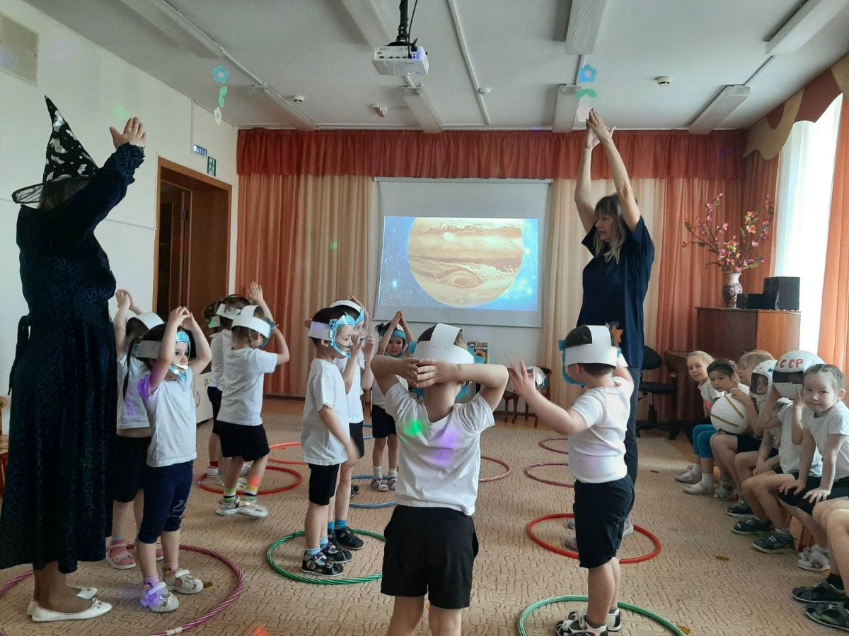 12 апреля прошло спортивное развлечение «Путешествие в Космосе» для детей групп № 13 и № 14. Во время полета дети встретили Звездочета, который рассказал о космических приборах, необходимых для изучения космоса. Ребята назвали все планеты солнечной системы и ответили на вопросы и загадки. Вместе со Звездочетом побывали на каждой планете. Звездочет приготовил для ребят сюрприз – книгу «Волшебство космоса», на страницах которой оживает космос!