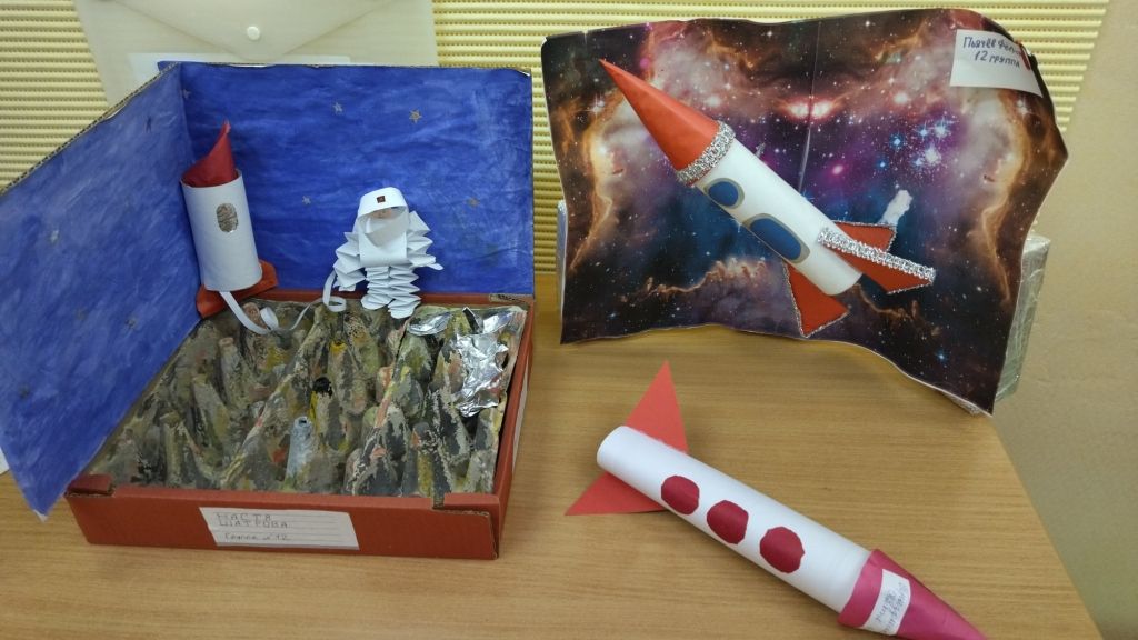 Выставки детско-родительского творчества «Волшебство космоса» были организованны во всех возрастных группах. Представленные поделки завораживают своим оригинальным исполнением, изготовлены в разнообразных техниках (макеты, аппликация обрывная, гравировка, поделки из папье-маше ). Широко использовались бросовые материалы.