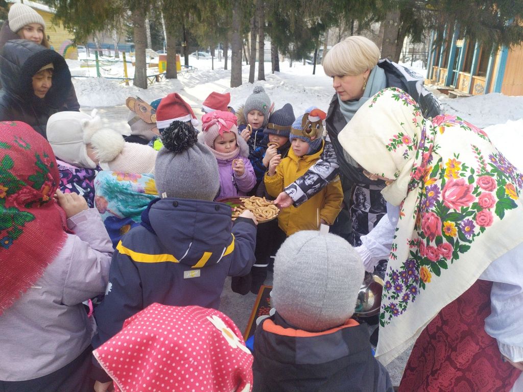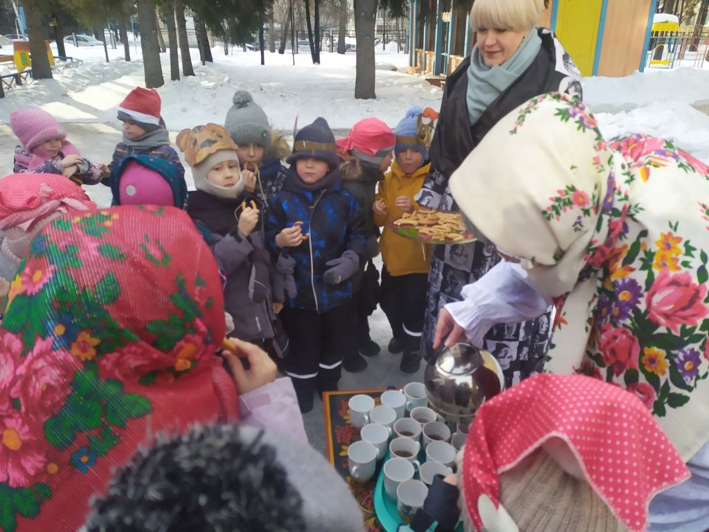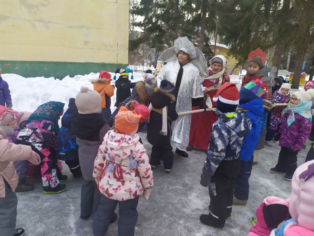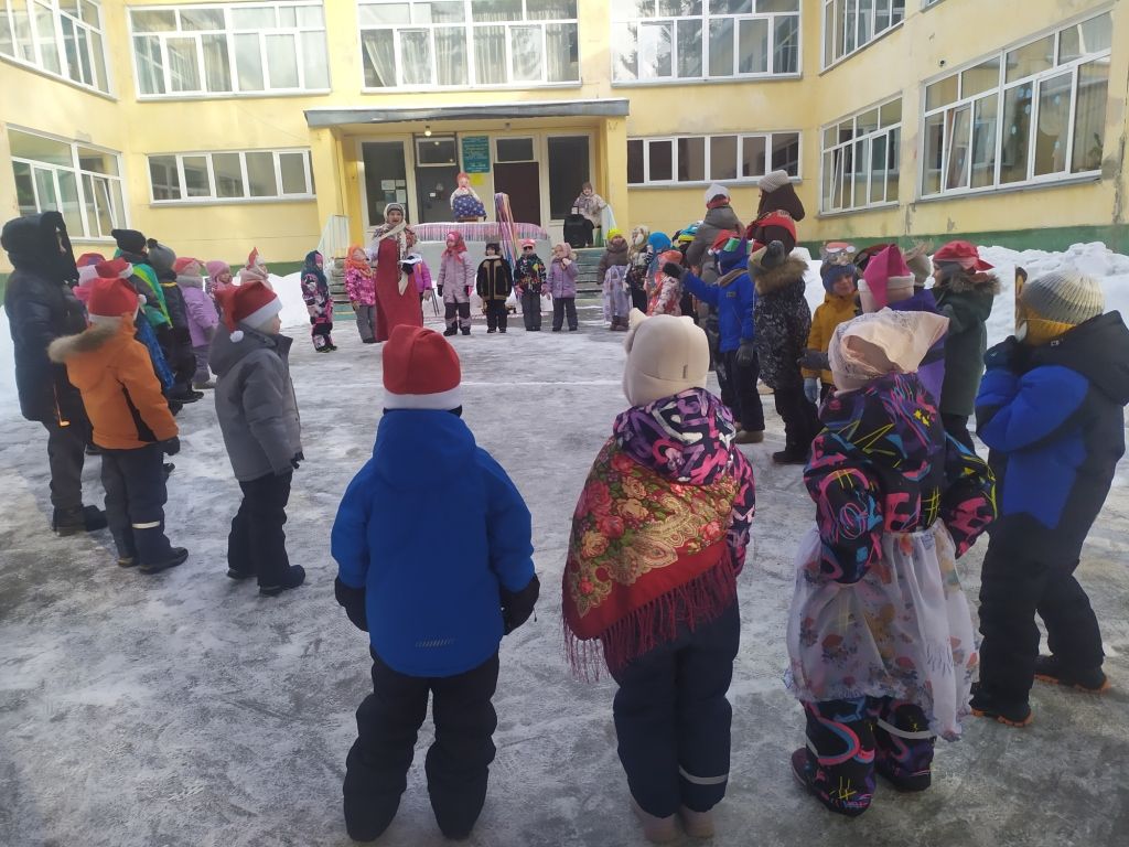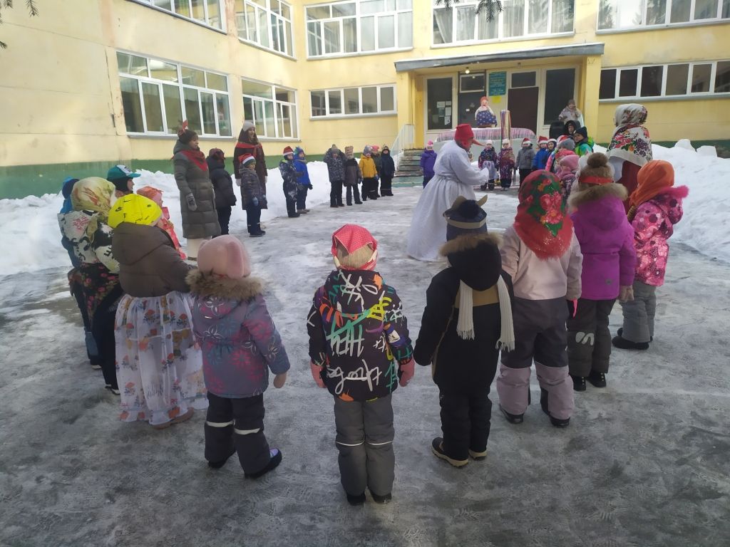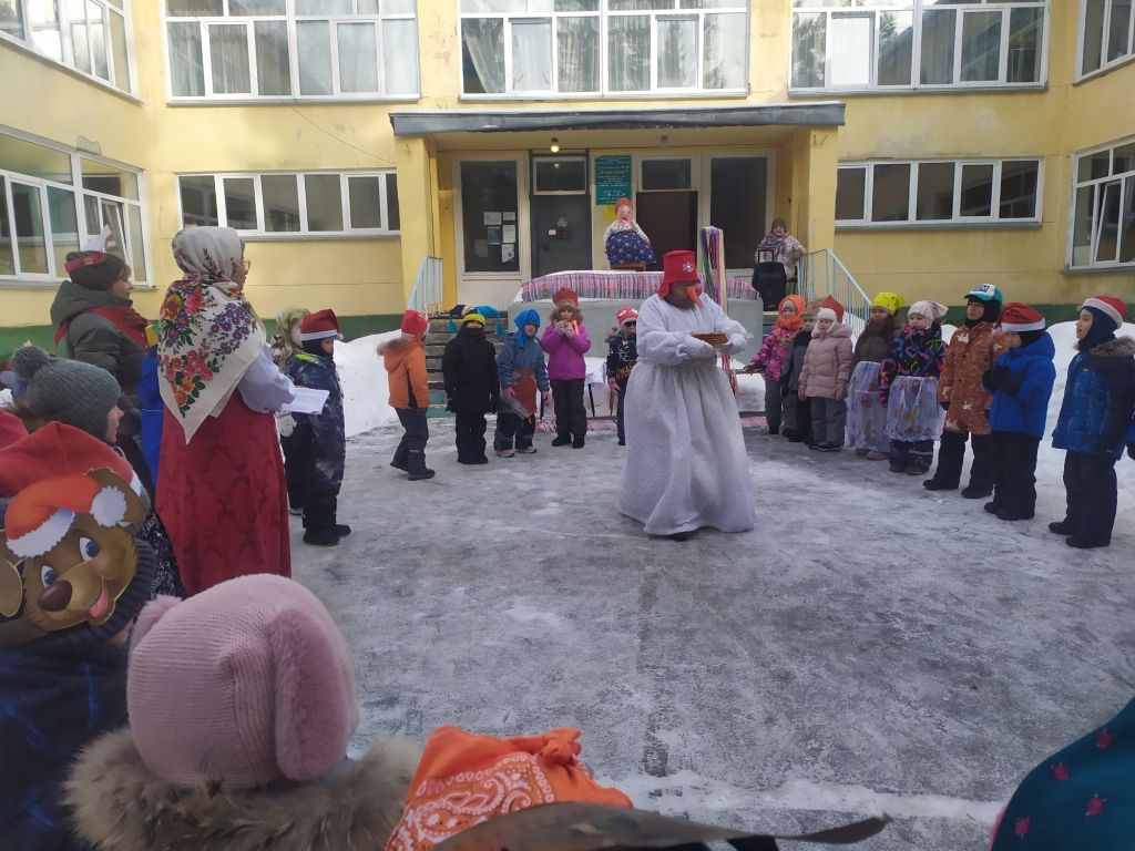 Вот и в нашем детском саду «Теремок» 20 февраля прошел праздник Масленицы под названием : «Как Снеговик блины украл». К нам на праздник пришли гости – ребята из детского сада «Сказка». Дети собрались на открытой площадке и отправились в гости к Масленице на паровозике под песню «Паровозик – Масленица». В гости к ребятам пришел Снеговик, его встретила Матушка - Забавушка. Все вместе поиграли в игры «Снежный ком», «Русские блины», «Блин с икрой». Снеговик испугался , что дети провожают зиму и встречают весну – ведь он растает. Этот проказник забрал у детей блины и убежал. На смену ему пришла Зима. Она проверила ребят на силу в игре «Перетяни канат» и на ловкость в игре «Выпал беленький снежок». Зима вернула ребятам Снеговика с блинами, да еще и с баранками. Зима успокоила Снеговика, что у Деда Мороза в Великом Устюге он не растает. Праздник закончился чаепитием.