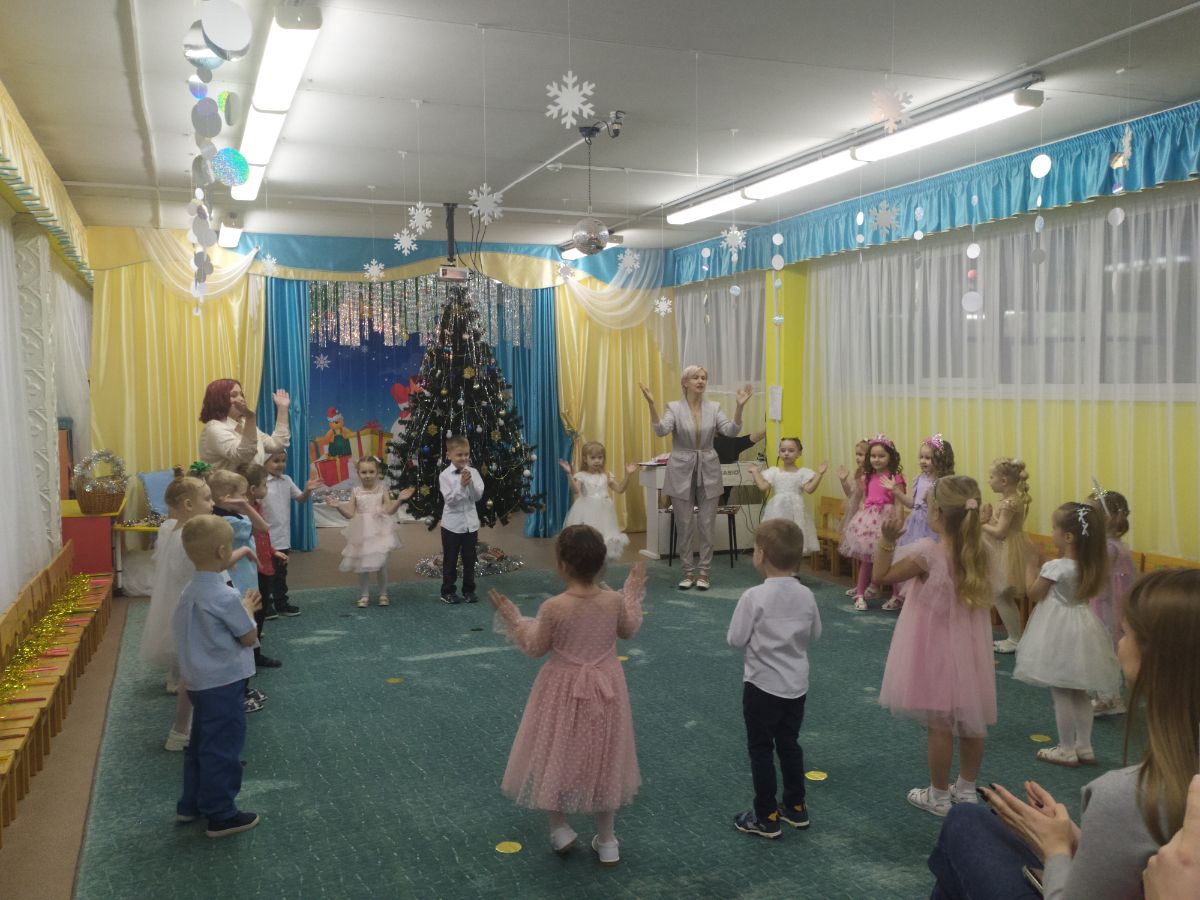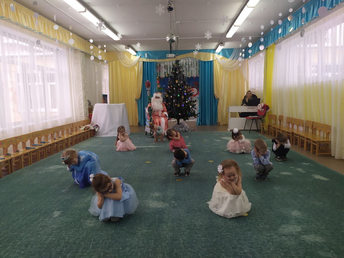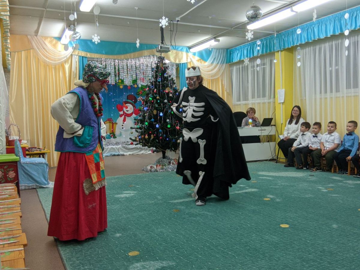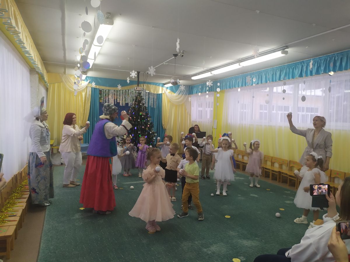 А к ребятам 1 и 5 групп приходили Баба Яга, Кощей Бессмертный, Снегурочка. Ребята сами выступали в роли сказочных персонажей снеговиков и снежинок, дружно исполняли песни, танцы.