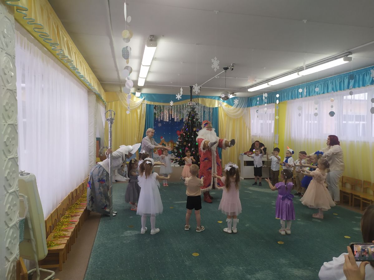 В эти волшебные дни в гости к ребятам 2 и 3 группы приходили в гости Зайчик, Лисичка и Мишка, с которыми дети играли в разные подвижные игры. И, конечно же, Дедушка Мороз и Снегурочка порадовали ребят и праздничными хороводами, и сладкими подарками.