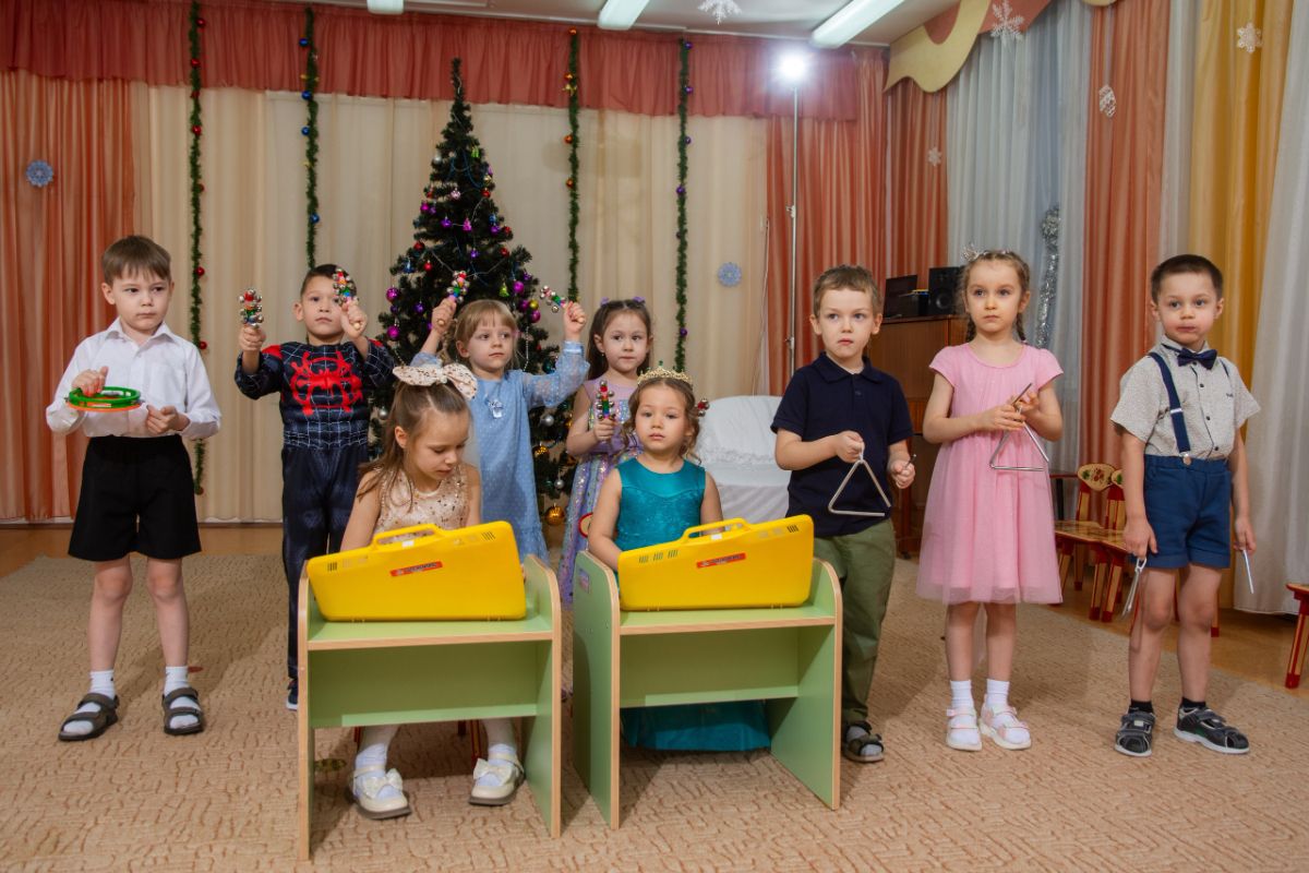 К ребятам 13 и 14 группы приходил в гости Дед Мороз! Дети весело играли вместе с дедушкой в снежки и игру «Ёлочки-пенёчки», читали стихи, исполнили песни «Белые снежинки» и «Снежинка красавица» , а так же танец-хоровод «Новогодняя считалочка». Дед Мороз ни разу не видел и не слышал музыкального оркестра, и ребята исполнили ему музыкальную композицию «Новогодняя фантазия», играя на джингл-стиках, металлофонах, музыкальных треугольниках и бубнах. Дети заветными словами «Раз, два, три, ёлочка, гори!» помогли Деду Морозу зажечь огоньки на ёлочке и отыскать мешок с подарками. А потом все дружно фотографировались с подарками около нарядной ёлочки.