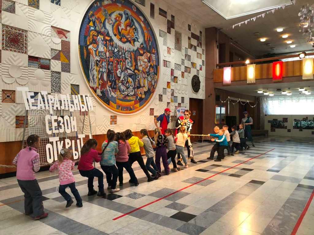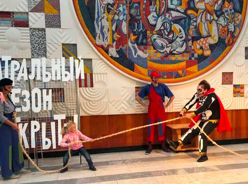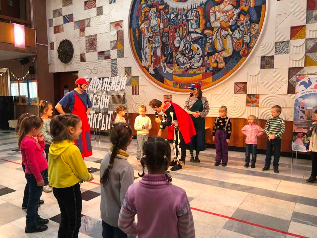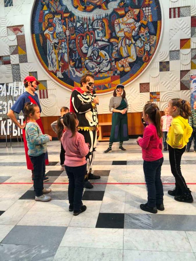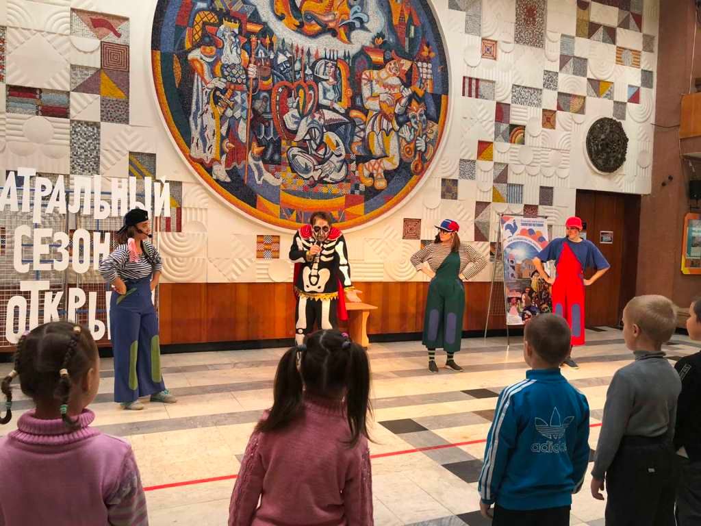 Мероприятие проходило в вестибюле театра в формате интерактивных игр по теме «Здоровый образ жизни». Дети отвечали на вопросы ведущих о вредной и полезной еде, что нужно делать, чтобы быть здоровым. А вредный Кощей Бессмертный путал и перебивал детей.!