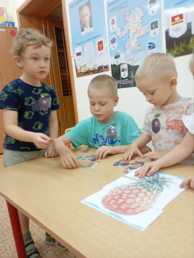Осенний баттл состоял из 6 раундов. Дети и родители отгадывали деревья, изображённые на картинках; угадывали сказки, в которых присутствуют овощи или фрукты («Репка», «Пых», «Вершки и корешки», «Мешок яблок»); собирали «урожайные пазлы» и мешочки «арбузики»; проявляли смекалку в сборе урожая (дидактическая игра «Разложи овощи и фрукты по корзинкам); и тянули канат - «Репку».