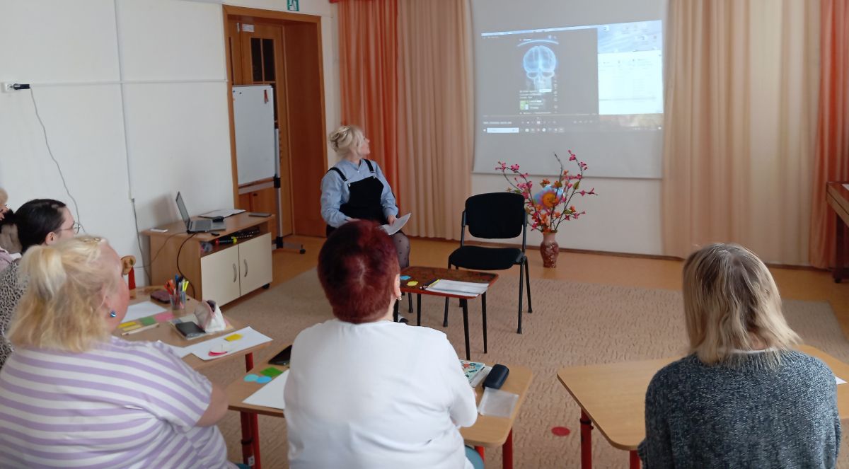 В первой - теоретической- части старший воспитатель И.Ю. Сластихина раскрыла следующие темы: «Межполушарное взаимодействие как процесс обмена информацией», «Ключевые функции правого и левого полушария». Обратила внимание на взаимодействие работы обоих полушарий как фактора эффективности работы головного мозга. Педагоги просмотрели ролик, направленный на расширение и понимание причинно - следственных связей, возникающих трудностей у детей при обучении. Рассказала о нейродинамических играх и упражнениях, целью которых является развитие психических процессов: памяти, внимания, мышления, зрительно-моторной пространственной координации, активизации речи. Более подробно эту тему осветила учитель-логопед В.В. Кутузова.