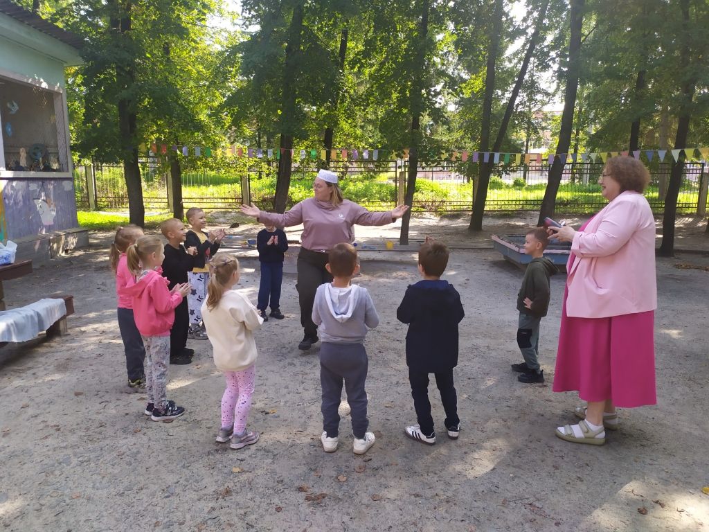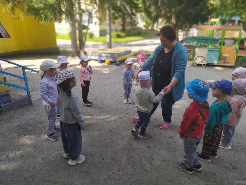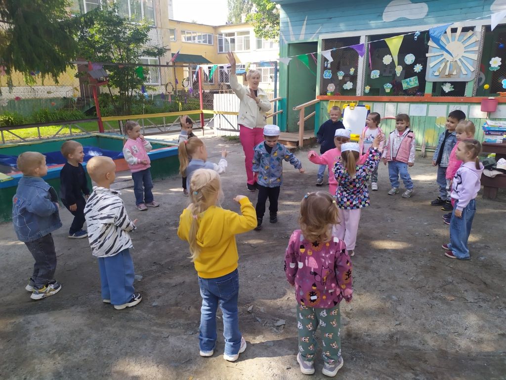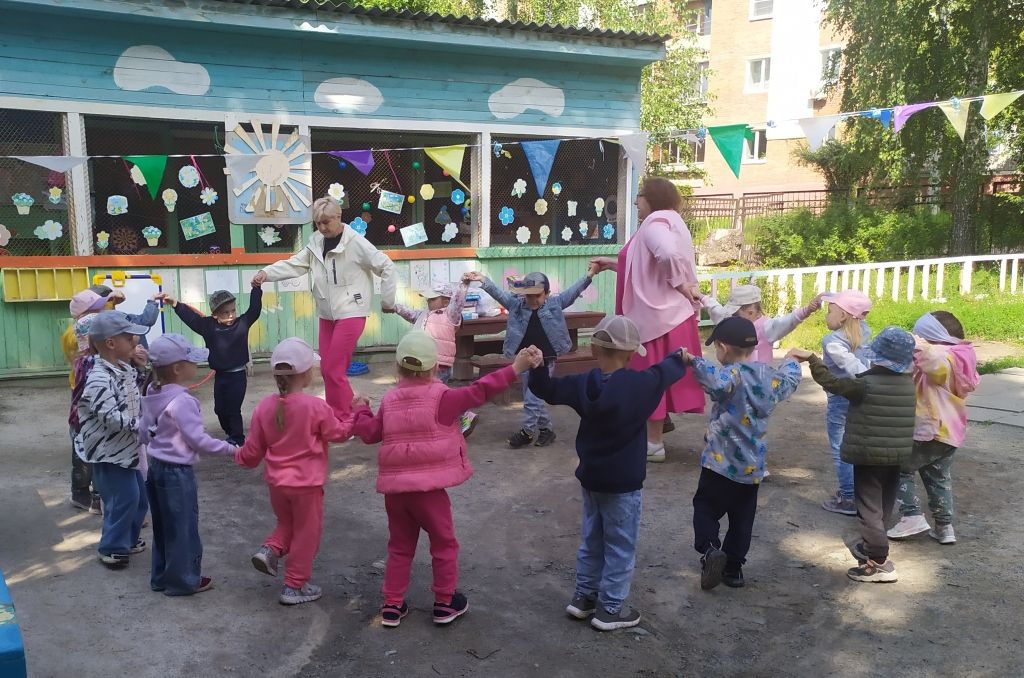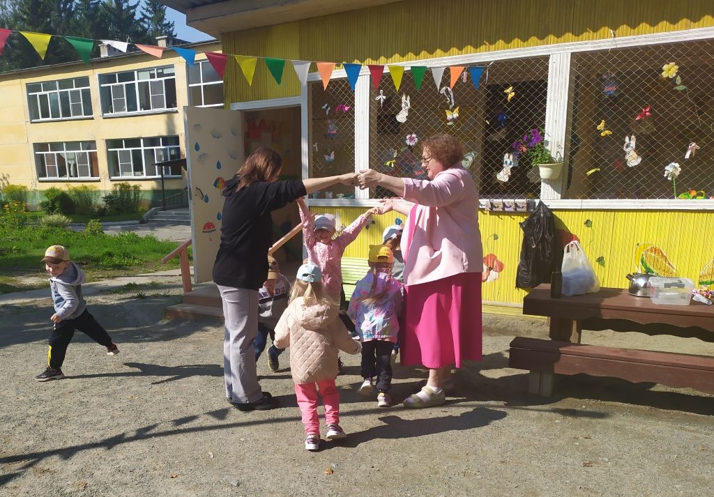 А во время прогулки каждая группа на своём участке под чутким руководством музыкального руководителя Галины Александровны Сергеевой поиграла в русские народные игры «На горе – то калина» и «Золотые ворота», в башкирскую игру «Тюбетейка», татарскую игру «Горшок» и игру народов Сибири и Дальнего Востока «Полярная сова и евражки».