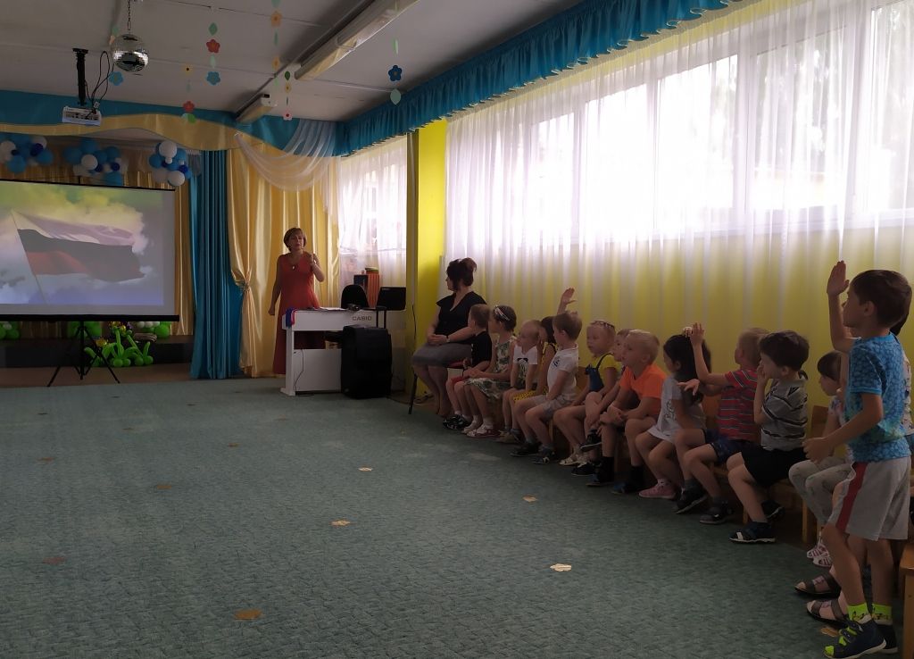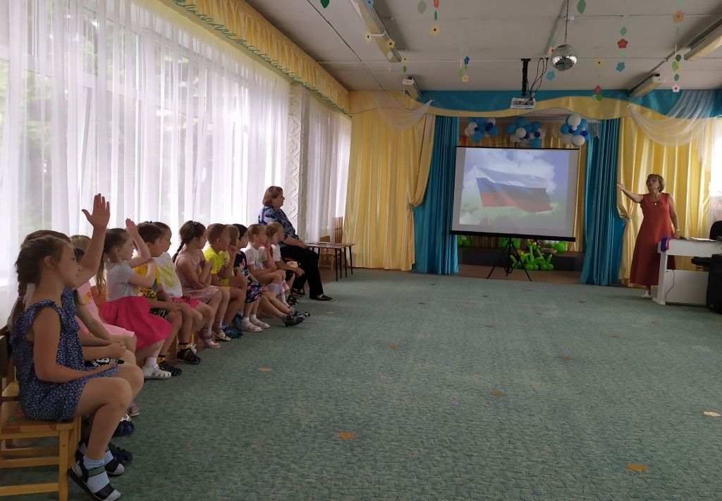 На празднике говорили с ребятами о символах государства. В торжественном молчании слушали маленькие россияне гимн страны, говорили о значении каждого из трёх цветов российского триколора,