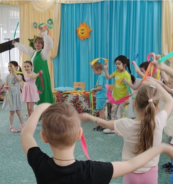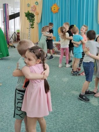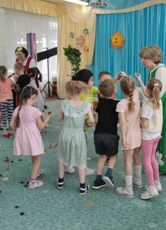 Во время праздника ребята исполнили весенние песни «Согрей меня, согрей», «Весняночка», поиграли на шумовых музыкальных инструментах, пошуршали блиночками под музыку Stop$go, собрали разноцветные баранки, надели лучики на солнышко, украсили клубничками самый сладкий блиночек, станцевали парный танец «Побежали парами», «Это ты, это я», поиграли с тучкой и разноцветными ленточками и все вместе развеселили блин Печальку.