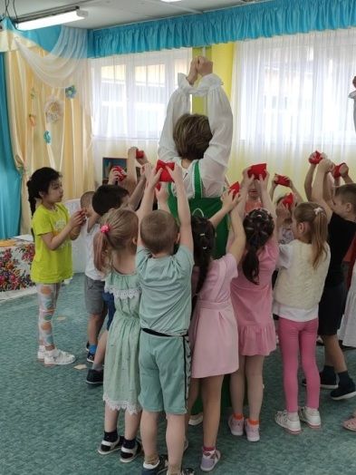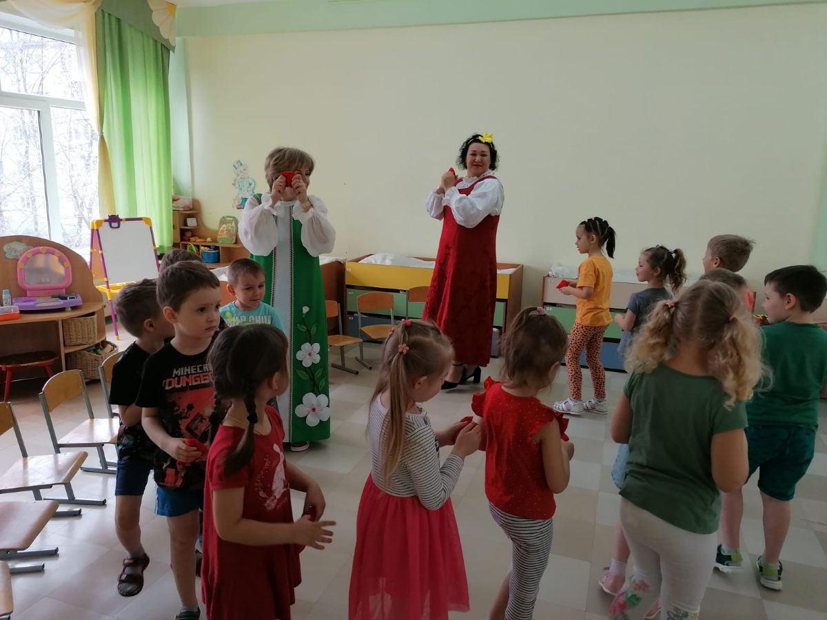 19 апреля в средней и старших группах «Теремка» прошло весеннее развлечение «Блиночки - лапоточки», в котором дети окунулись в атмосферу ярких и весёлых игр.