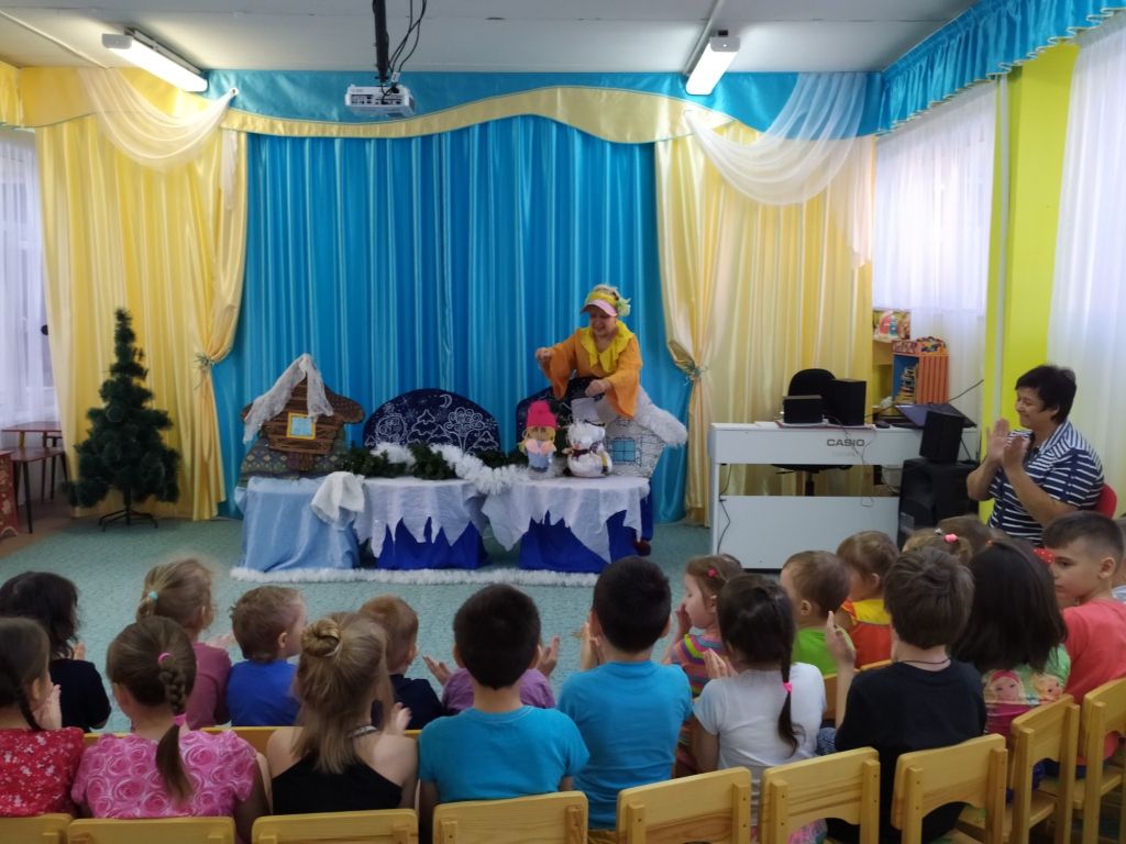 В гости к ребятам приходили артисты со спектаклем «Зимняя сказка». Главные герои - Снеговик и Снеговичок, мальчик Серёжа и девочка Лена. Ребята учили говорить их вежливо. Спектакль был веселый, динамичный, музыкальный. Детям было интересно, они с удовольствием участвовали в процессе - хлопали, топали, танцевали.