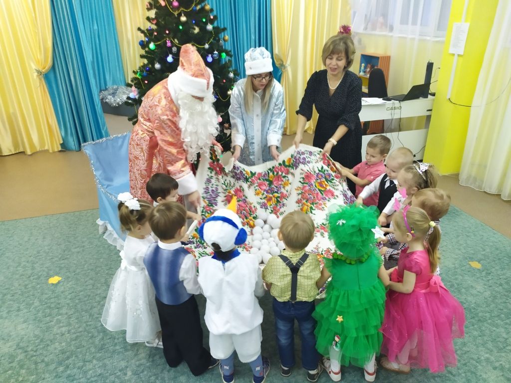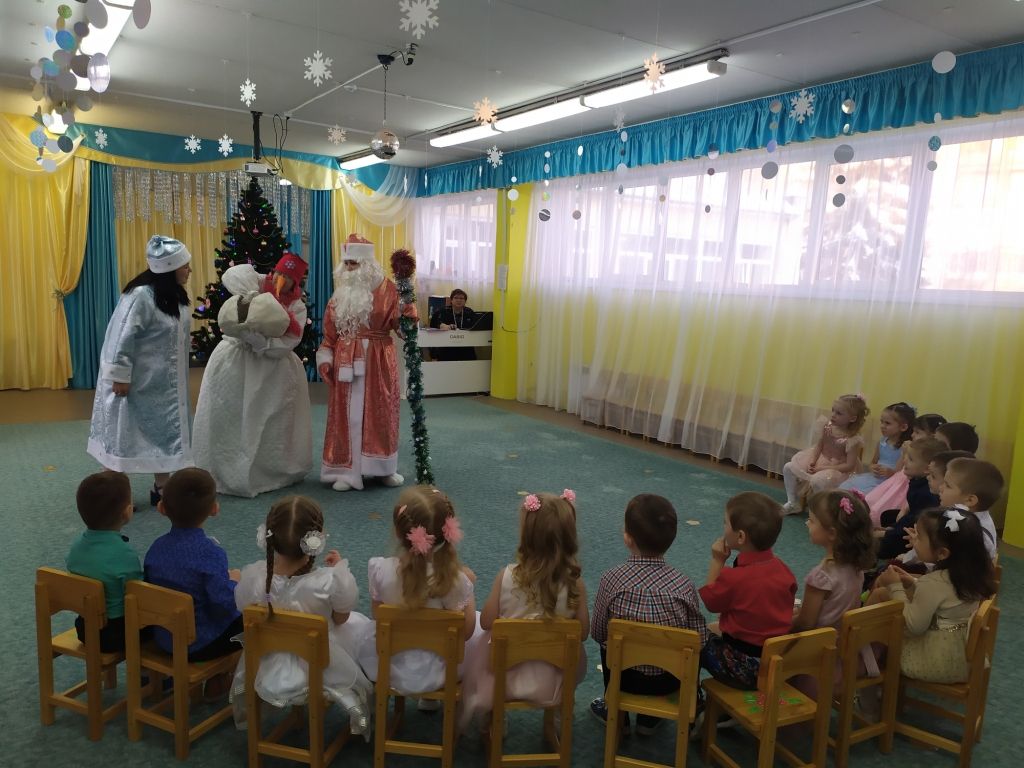 В старших и подготовительных группах дети спасали Тигренка из коварных лап Волка и Лисы. В этом им помогали Дед Мороз и Снегурочка. Дети исполняли зимние песни, озорные частушки, на музыкальных инструментах оркестры «Новогодняя полька», «Льдинки и снежинки», «Зимнее чудо», исполнили флэш-моб «Падают снежинки». А с помощью игры-ускорялочки «Что подарит Дед Мороз» рассказали о своих новогодних желаниях и получили подарки.