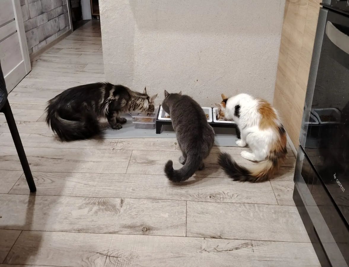 - В другой семье - британка короткошёрстная Мася, обычная кошка Ася и провокатор мейкун Бася, который всех цепляет и не даёт спать по ночам.