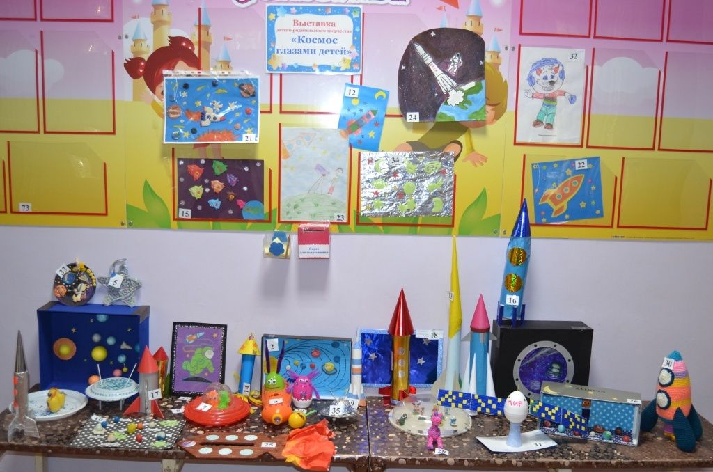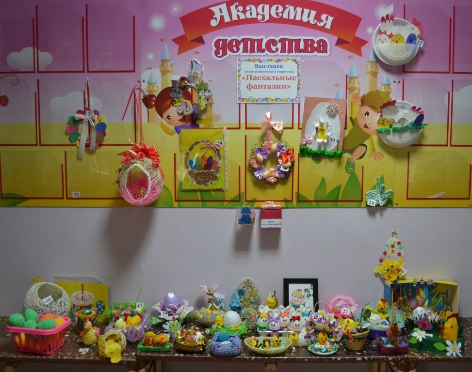 В апреле в нашем «Теремке» проходили две выставки детско-родительского творчества: с 5 по 11 апреля – «Пасхальные фантазии», а с 12 по 20 апреля - «Космос глазами детей».