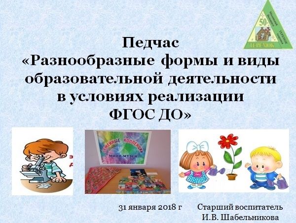 31 января в 1 здании «Теремка» был проведён педчас «Организация разнообразных форм и видов образовательной деятельности в условиях реализации ФГОС ДО», цель которого – организовать профессиональный диалог педагогов по теме мероприятия.