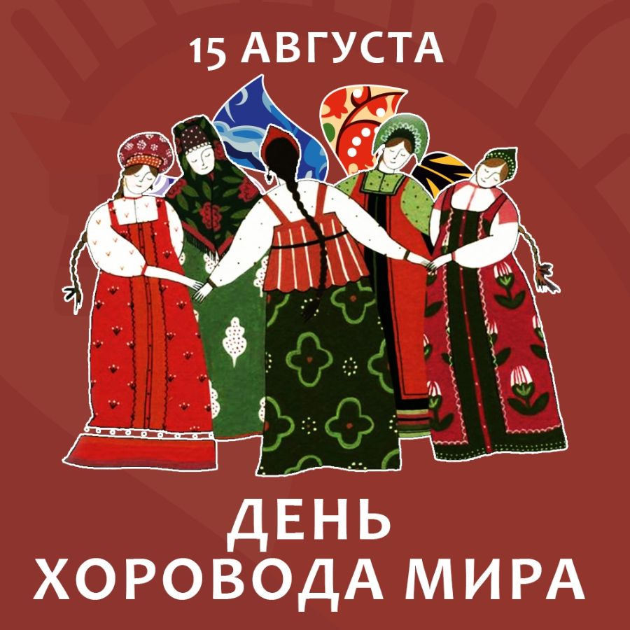15 августа отмечается необычный праздник - День хоровода Мира. Этот праздник распространился в России и других странах благодаря инициативе обычных граждан. Впервые «Хоровод Мира» состоялся в 2017 году в Санкт-Петербурге на Дворцовой площади. Посвящено праздничное событие миру и дружбе между народами.