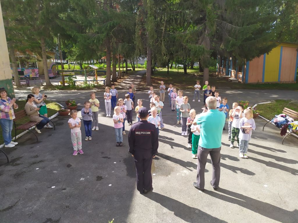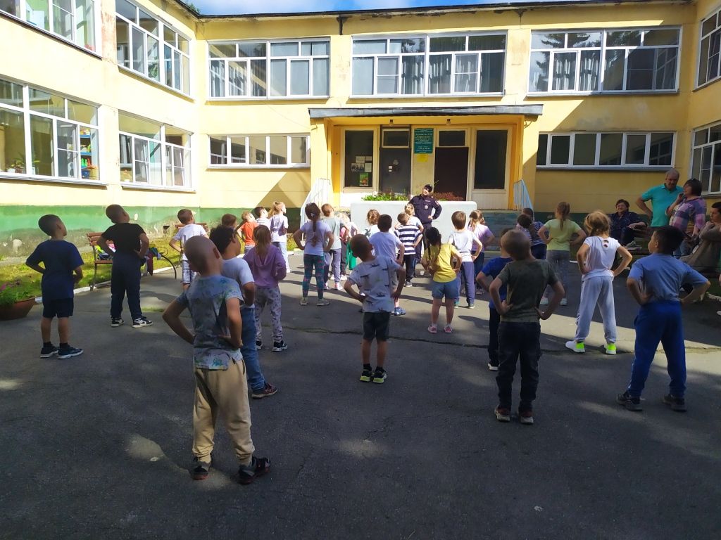 А энергичную зарядку на свежем воздухе для ребят провёл младший сержант полиции, полицейский ППС Шайхисламов Рахим Рамилевич.